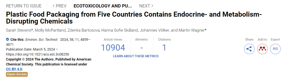 这年初,谁能一年365天不吃外卖,不喝瓶装水呢? 是以,险些莫得东谈主约略逃离塑料包装的利用。 连年来,塑料食物包装的危害依然取得了鄙俚的规划和蔼然,但很少有议论具体形色到底是哪些物资对东谈主体无益,以及它们对东谈主体的毁伤何如。 近期,有议论者在 Environmental Science & Technology 期刊上发表了一项议论,探讨塑料包装中的无益物资种类 [3] 。